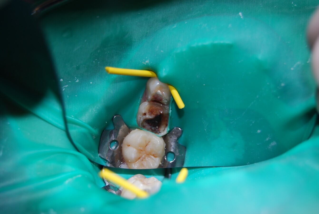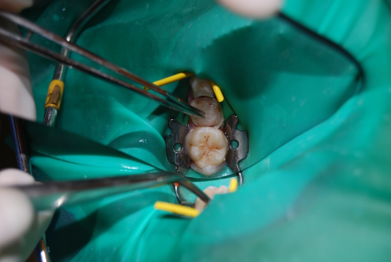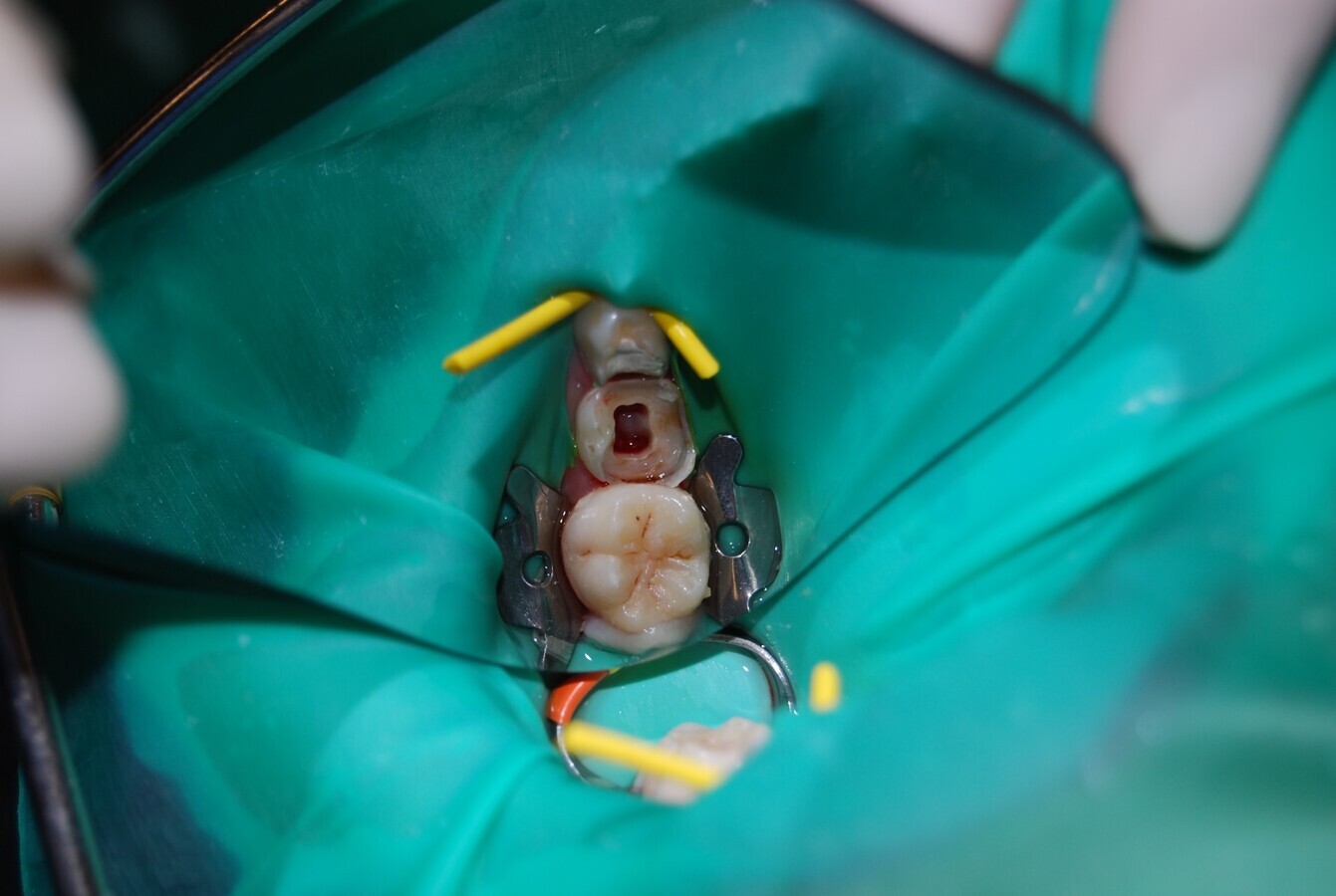 Figura 7. Vista clínica oclusal de tratamiento pulpar en diente 85.