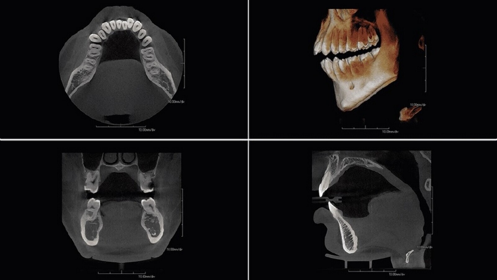 Imagen panorámica de 360° con 523 a 1024 vistas proyectadas, captada con el tomógrafo PreXion3D Explorer Pro, que muestra su amplio campo de visión.