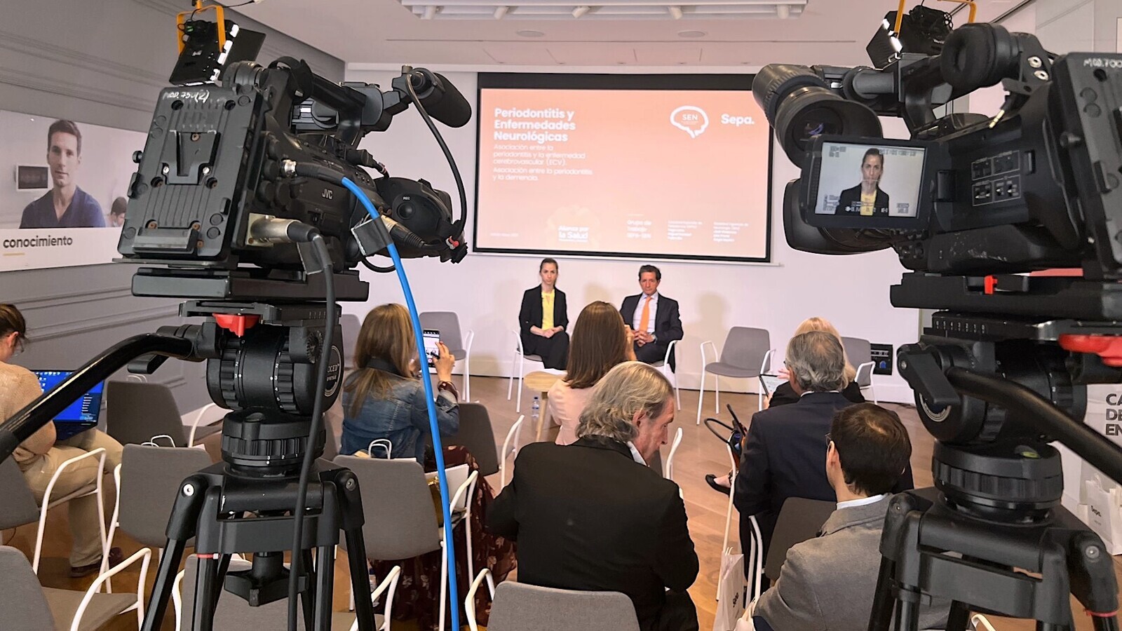Los medios de comunicación asistieron para cubrir la conferencia de prensa en la que se dio conocer el informe de SEPA y la Sociedad Española de Neurología so-bre la relación entre la periodontitis con la enfermedad cerebrovascular y con la demencia. (Foto: SEPA)