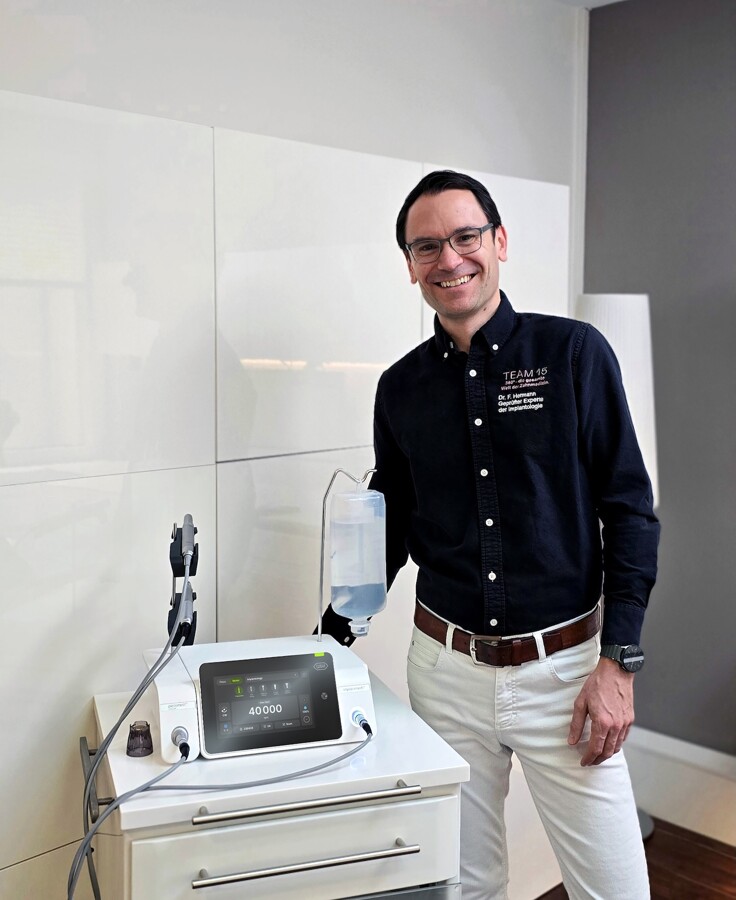 Dr Hermann. Mis áreas de especialización son la implantología, la periodoncia y la odontología digital. Desde hace 18 años dirijo la clínica “TEAM 15” en Zug, donde nuestro equipo interdisciplinario reúne todas las especialidades bajo un mismo techo. Nuestros dispositivos se utilizan de manera intensiva y cubrimos una gama muy amplia de indicaciones y aplicaciones.