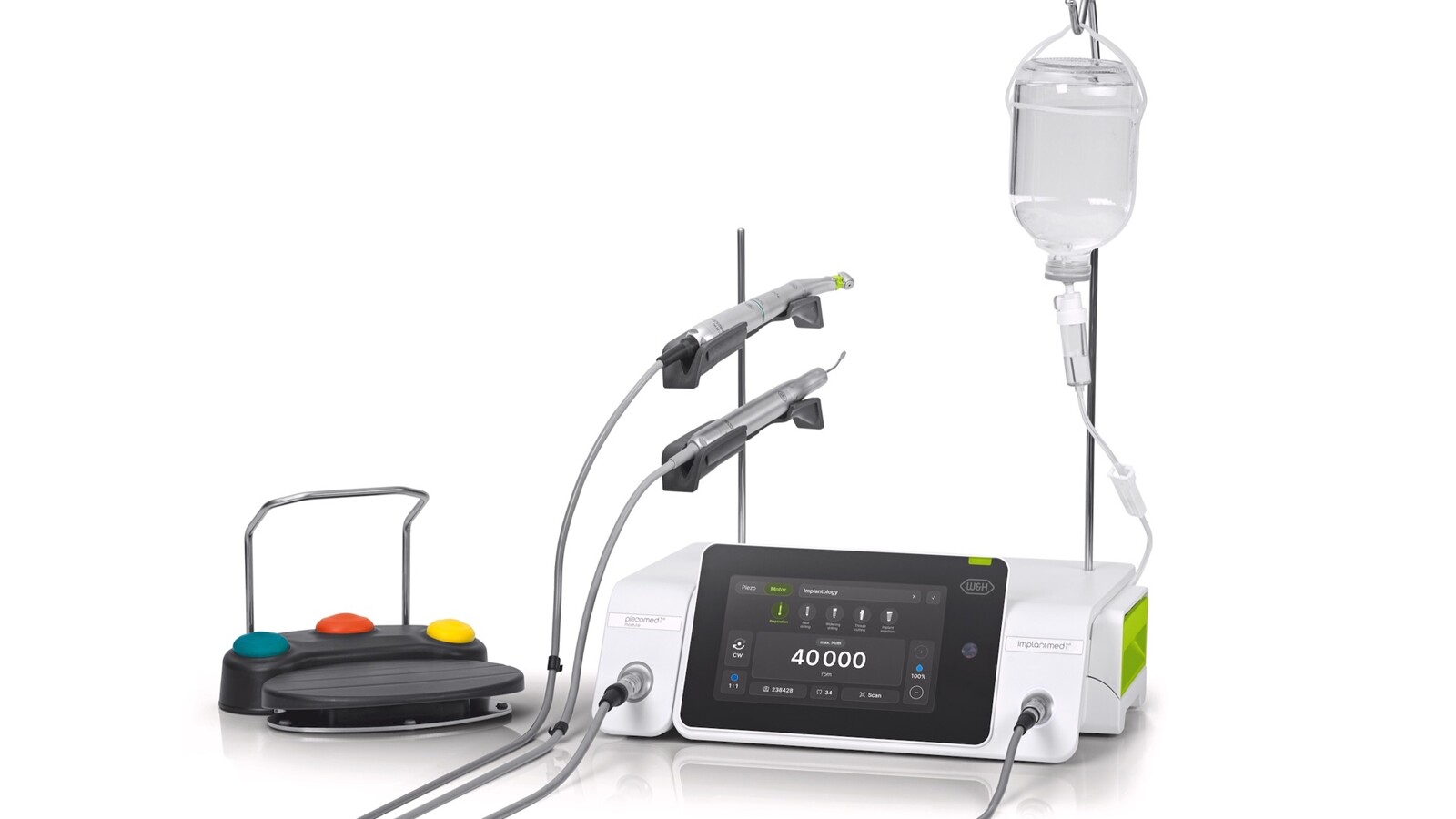El sistema modular ahorra tiempo y asegura flujos de trabajo fluidos. Todas las funciones están disponibles de inmediato y, durante la cirugía, el cambio entre implantología y piezocirugía es completamente fluido, sin necesidad de cambiar de dispositivo. Un solo equipo en lugar de dos unidades independientes también significa menos espacio requerido.