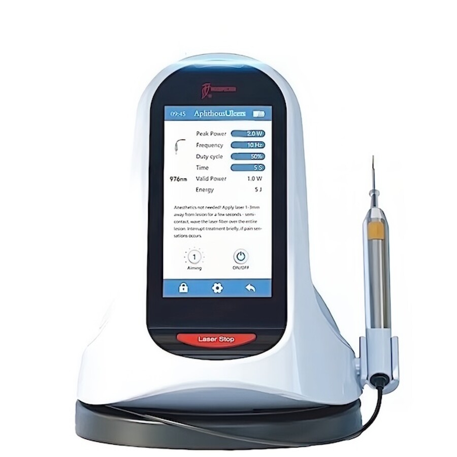 PRODUCTO. Láser de diodo Woodpecker de alta potencia, con luz azul y tres longitudes de onda para cirugía de tejidos blandos, esterilización endodóntica, periimplantitis y blanqueamiento. Foto: Woopecker