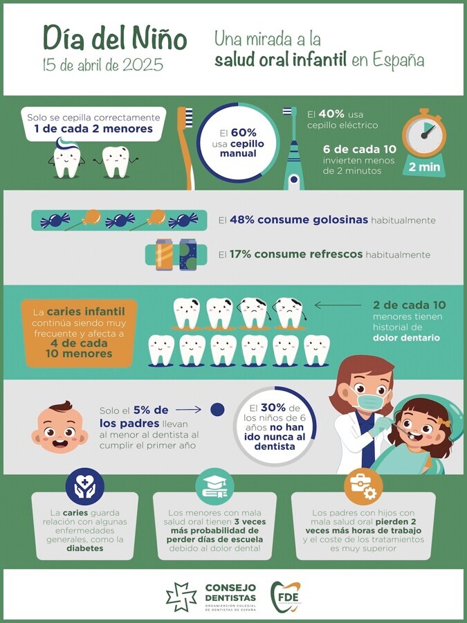 Con motivo del Día del Niño, que se conmemora el 15 de abril, el Consejo General de Dentistas y la Fundación Dental Española (FDE) han editado un folleto descargable destinado a los padres para ayudarles a prevenir la caries y concienciarles sobre la importancia de la prevención en salud oral.