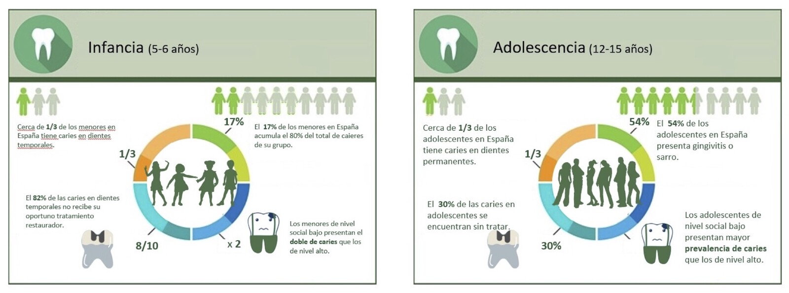 En la población infantil (5-6 años), la situación apenas ha mejorado desde el año 2000. La Dra. Núñez ha explicado que “un tercio de los menores presenta caries en dentición temporal, una cifra que no ha variado en todo este periodo. Además, el 80% de estas lesiones permanece sin tratar”. Por su parte, el Dr. Castro ha subrayado que esta falta de atención tiene consecuencias a largo plazo, ya que la presencia de caries activas en dientes temporales aumenta el riesgo de desarrollar caries en la dentición permanente. Asimismo, los niños de nivel socioeconómico bajo duplican la prevalencia de caries respecto a los de nivel alto. “En España, la atención prestada al tratamiento restaurador en dientes temporales es sumamente baja y requiere de un esfuerzo educativo y de comunicación a los padres de los menores. El Plan de Ampliación de la Cartera de Servicios en Salud Bucodental ha incorporado medidas preventivas a partir del primer año de vida, sin embargo, los recursos disponibles difícilmente podrán alcanzar a todos”, ha apuntado.