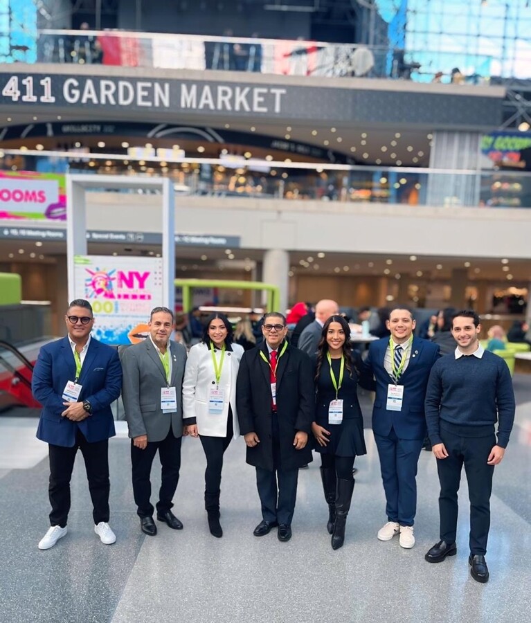 El presidente de la Fundación Dental Dominicana, en el centro con abrigo negro, junto a miembros de la institución en el Greater New York Dental Meeting de 2025. Foto: Fundación Dental Dominicana