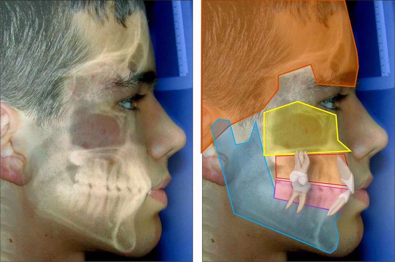 Figura 2. La clave de una buena estética facial no solo depende de la genética: el balance en el crecimiento vertical de las diferentes partes y sus características fractales son los que producen el resultado final. El crecimiento vertical dentoalveolar ocupa un lugar destacado y debe estar en coordinación con el crecimiento, de mayor influencia genética, del cóndilo y rama ascendente.
