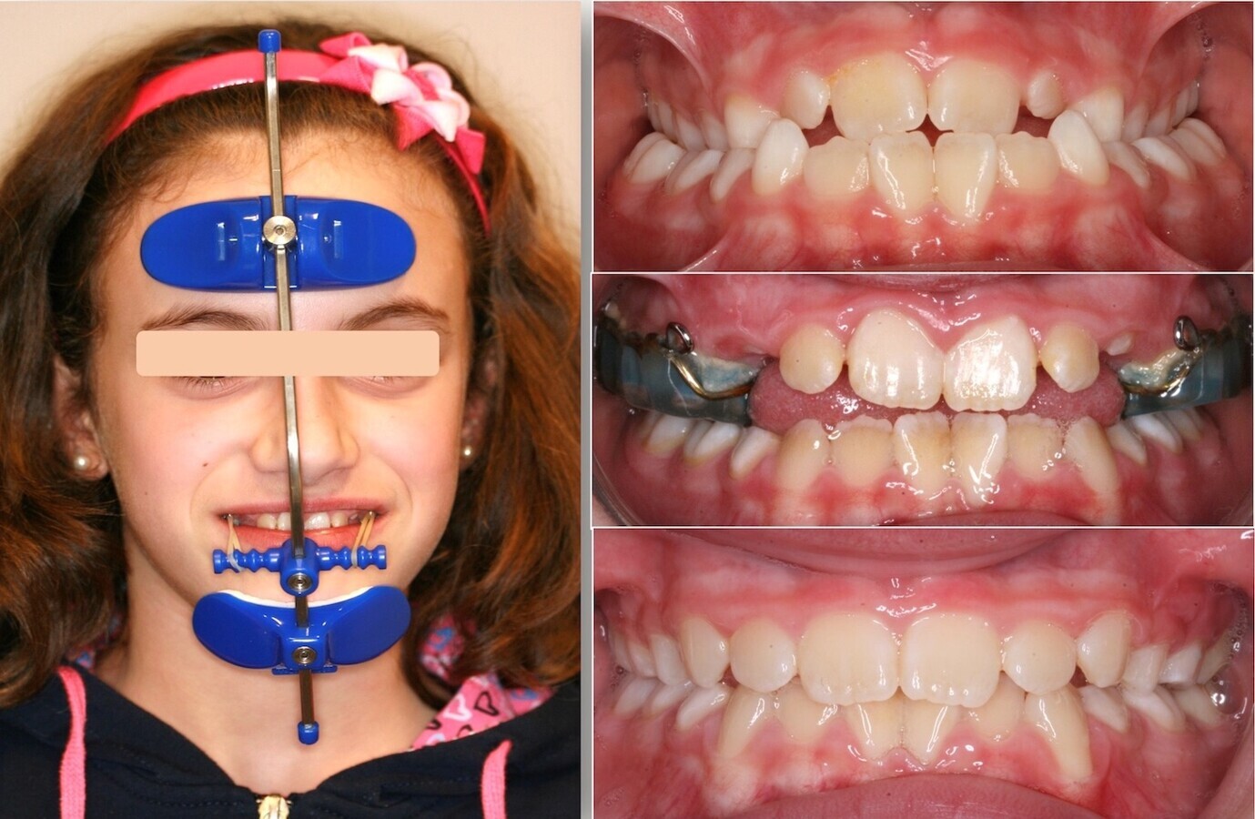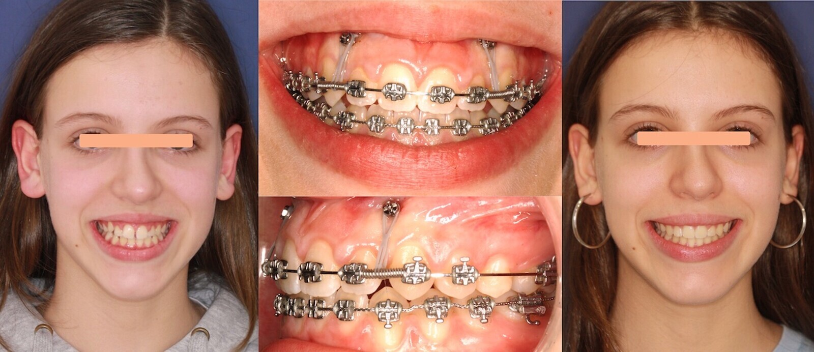 Figura 7. Los microimplantes y demás sistemas de anclaje temporal nos permiten hacer ortopedia muy efectiva y rápida incluso en niños, gracias a su alta eficiencia en el control del crecimiento dentoalveolar vertical. En la imagen, tratamiento en una niña de su sonrisa gingival con dos microimplantes.