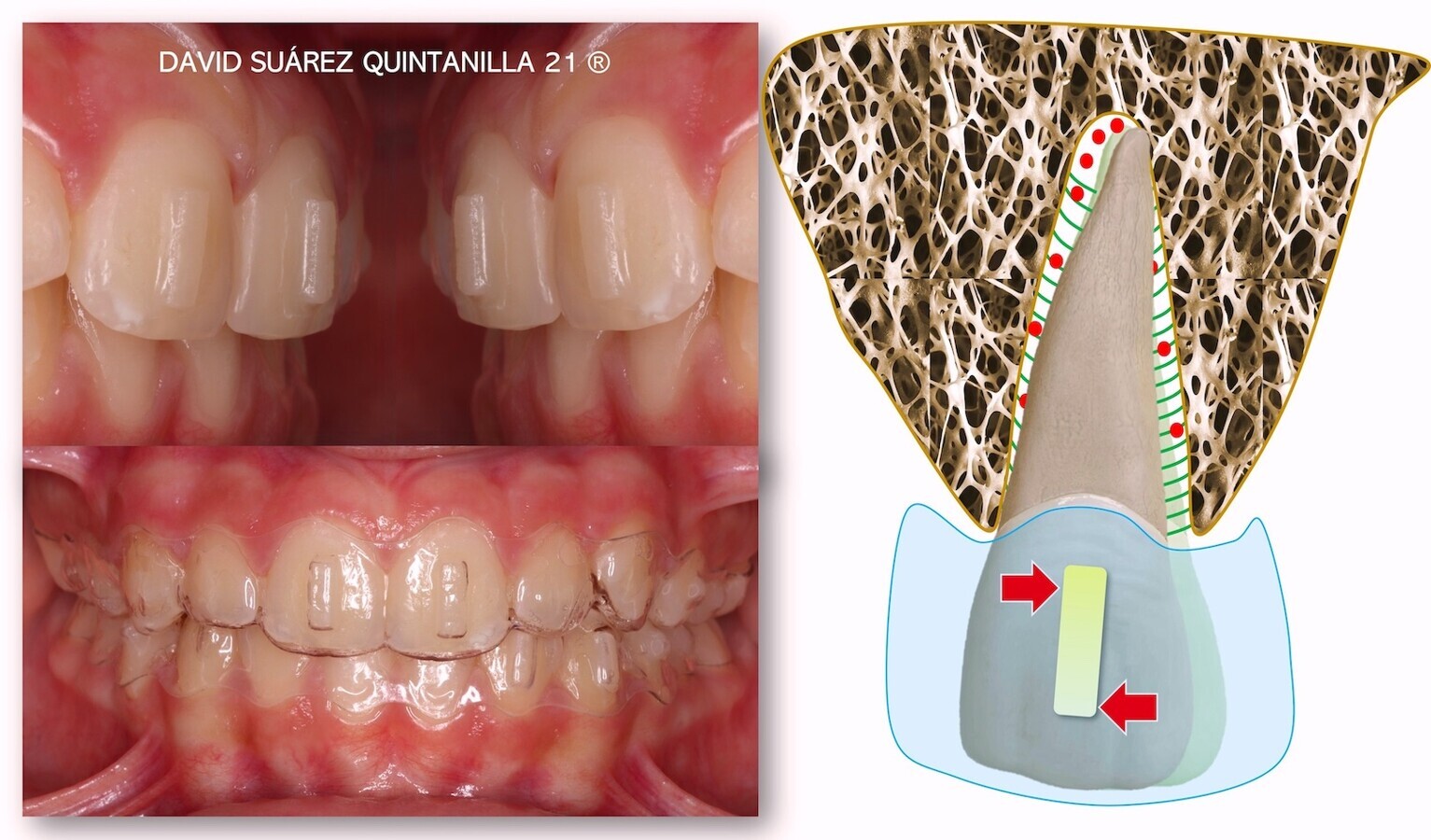 Figura 25. Puede ser que los alineadores, por el tipo de fuerza utilizada (ligera) y su ritmo de aplicación (con descansos para comer o higiene bucodental) y la revascularización durante ellos, produzcan un MDO óptimo.