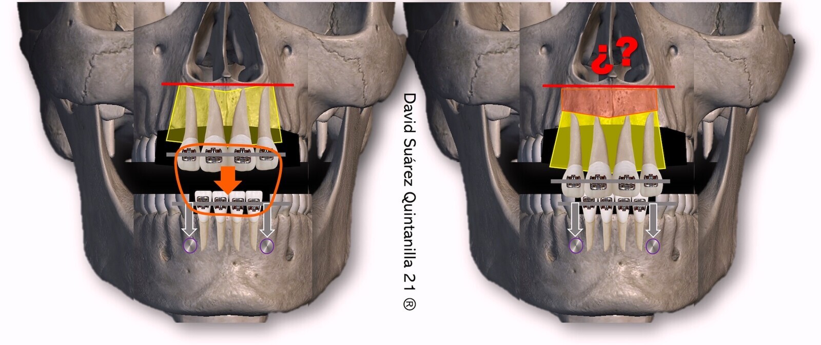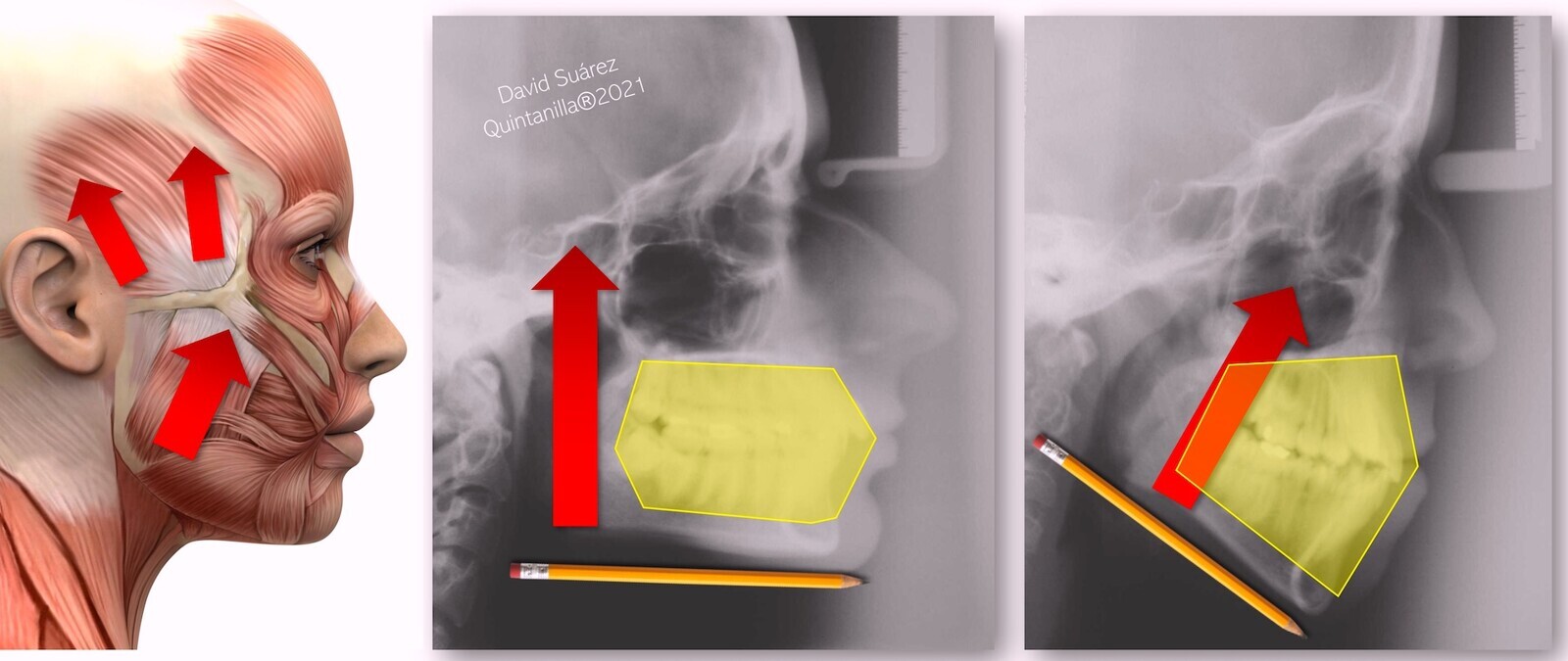 Figura 27. Esta imagen puede representar el futuro del tratamiento de los excesos verticales maxilares posteriores. Necesitamos mejorar tanto los sistemas de anclaje temporal como sustituir los actuales plásticos por biopolímeros. Sea como fuere, el control vertical del hueso alveolar está en nuestras manos y puede producir cambios increíbles en la cara de los pacientes. Seamos realistas y pidamos lo que hoy creemos imposible.