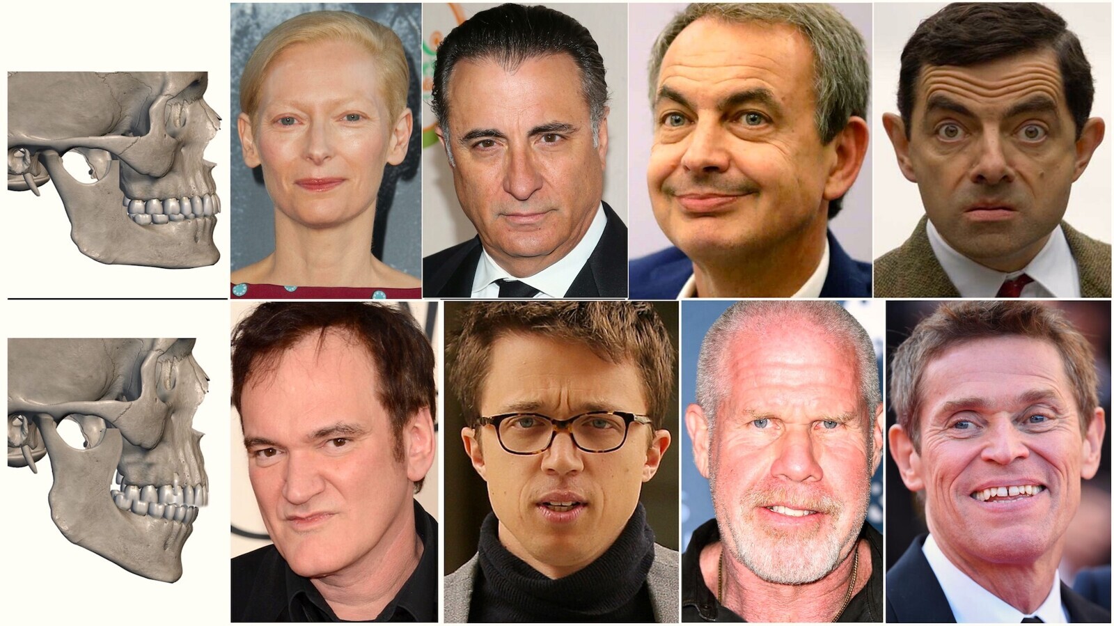 Figura 18. El comportamiento de los braquifaciales y dolicofaciales también varía al expresar las emociones en su cara; ante determinadas situaciones los braquifaciales tienden a apretar sus dientes, por su configuración muscular (me refiero a los músculos de la masticación, claro), mientras que los individuos dólicos suelen abrir la boca. Esta observación es del Dr. Alberto Cervera, al que recuerdo con enorme cariño.