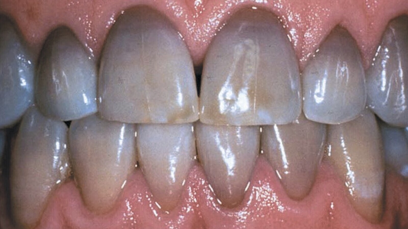 Figura 2. La alteración del color de los dientes debida a las tetraciclinas es una afección grave de la dentadura.