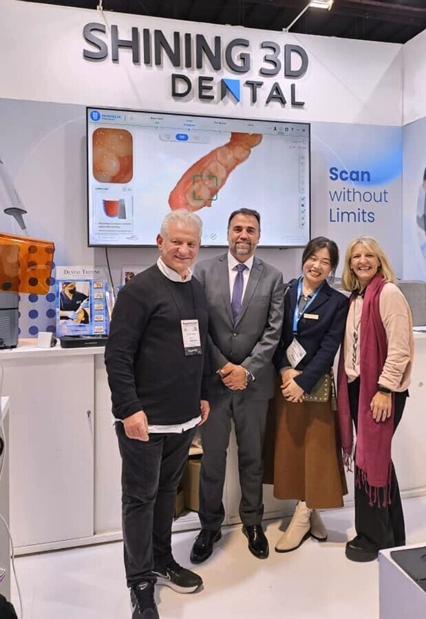 Convenio de cooperación entre Shining 3D Dental, Olympic Dental y AOA para impulsar la educación en Odontología Digital. Desde la izquierda aparecen, Carla Massoli (AOA), Sergio Kohen (profesor e investigador), Mariano Boichenco (distribuidor) y Katrina Wong (Shining 3D Dental).