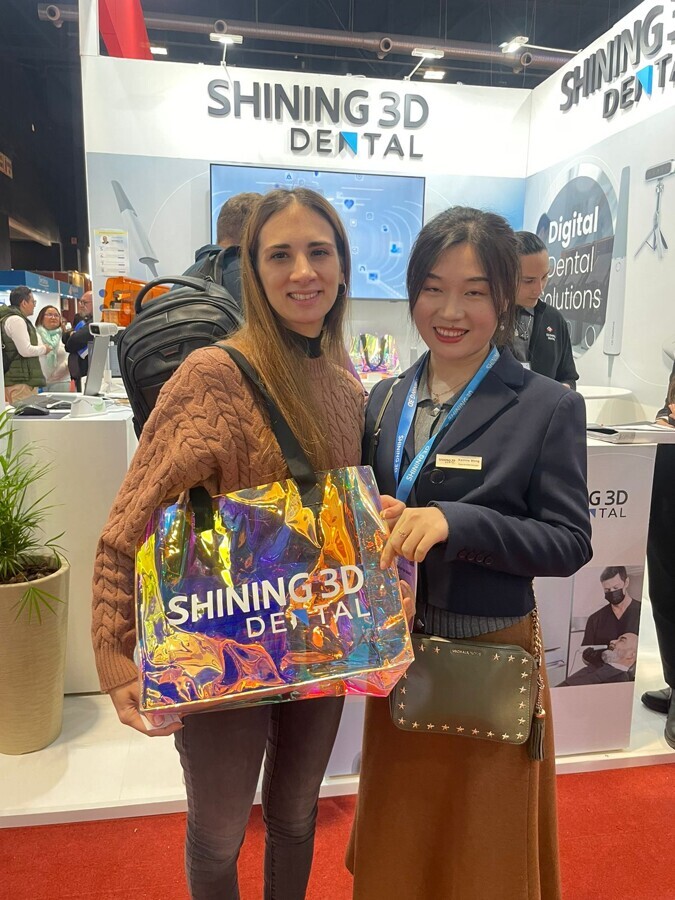 Evangelina Spadini, gerente de proyectos de la Feria La Rural donde se realiza Expodent, junto a Katrina Wong de Shining 3D Dental.