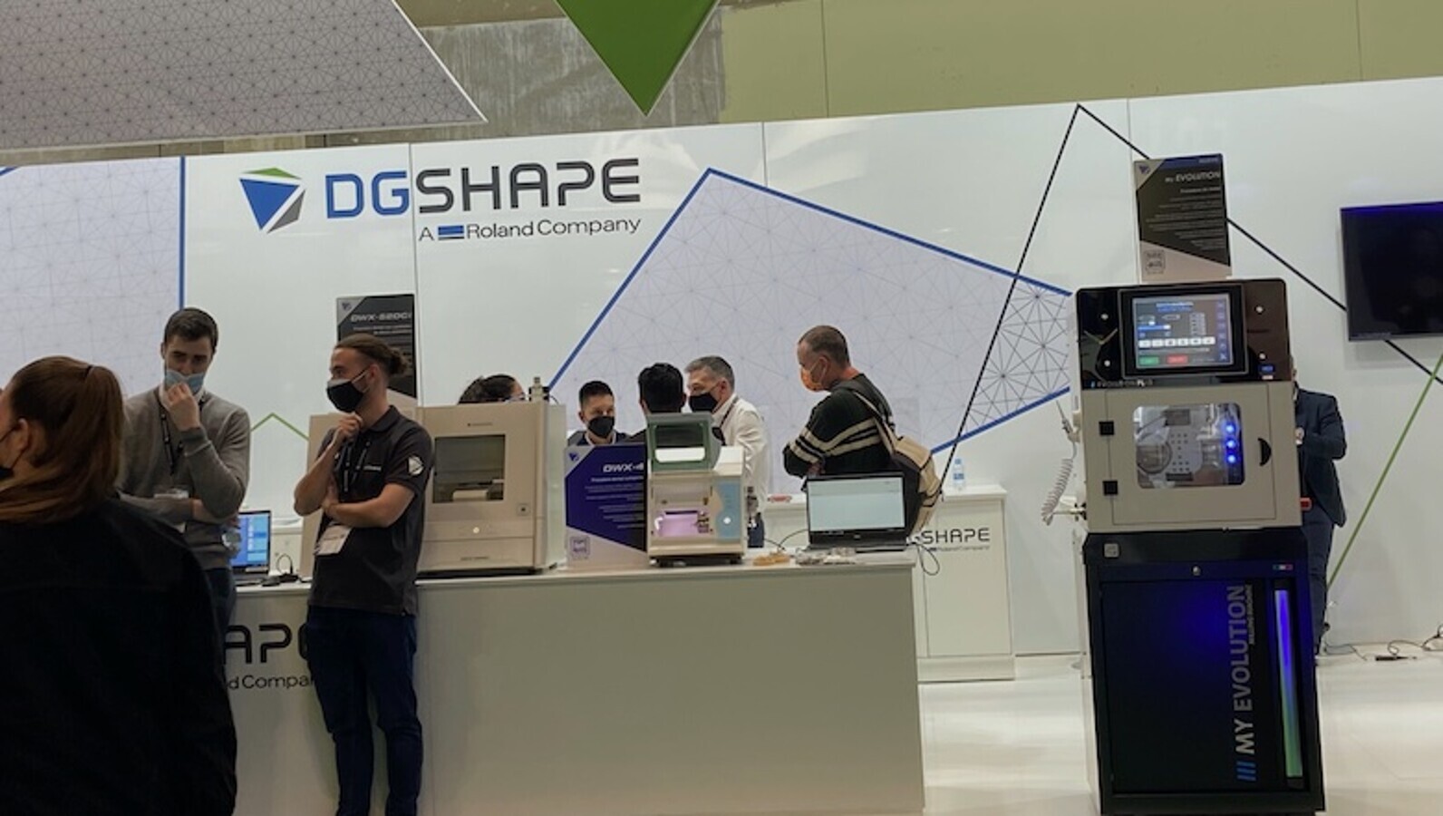 El stand de DGSHAPE, que ofrece varias de las fresadoras dentales más avanzadas del mercado, con dimensiones compactas y sistema de arquitectura abierta.