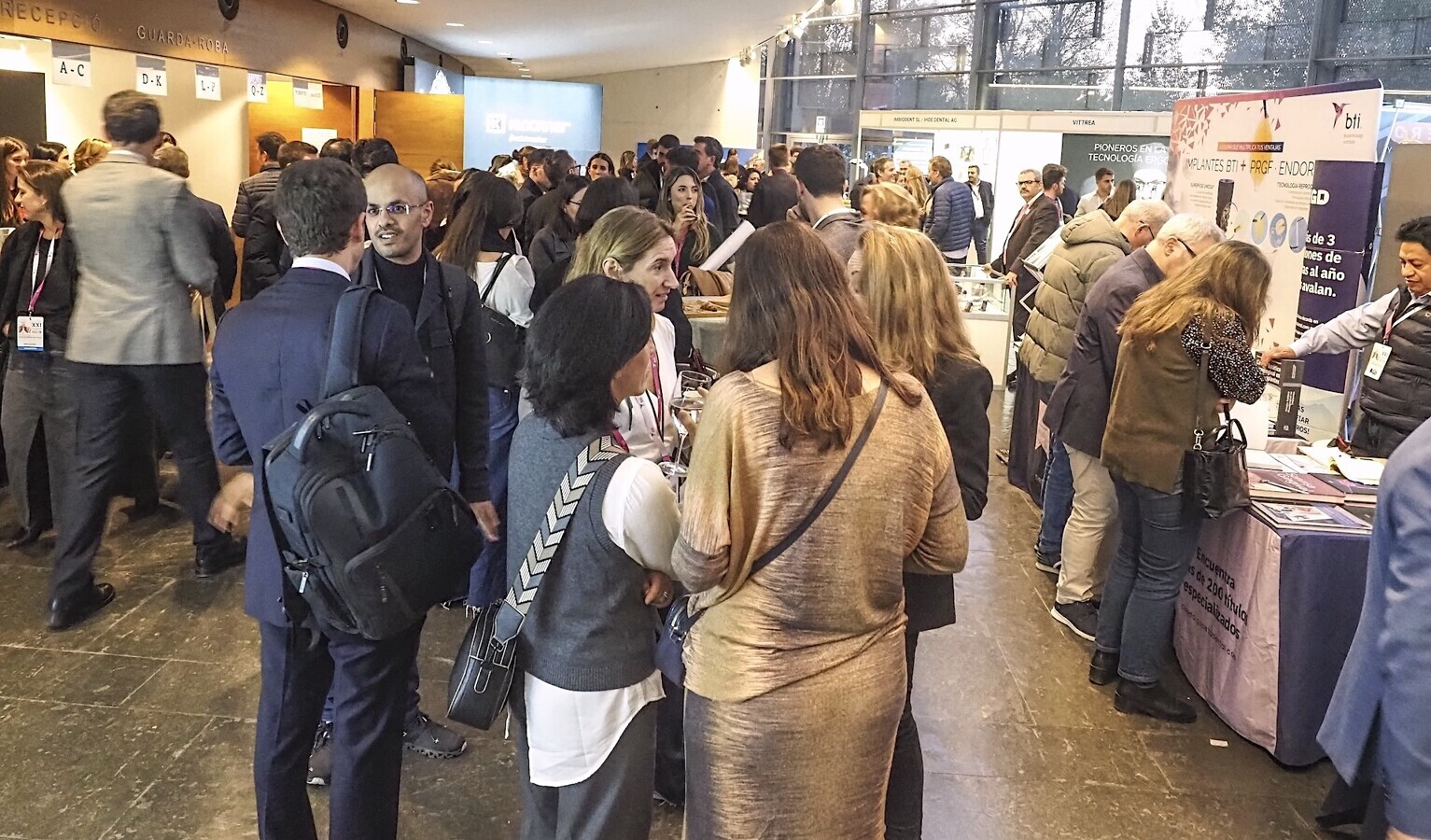 La exposición del evento atrajo a 22 casas comerciales, como BTI o la editorial de libros de Gaceta Dental, que aparecen en la imagen.