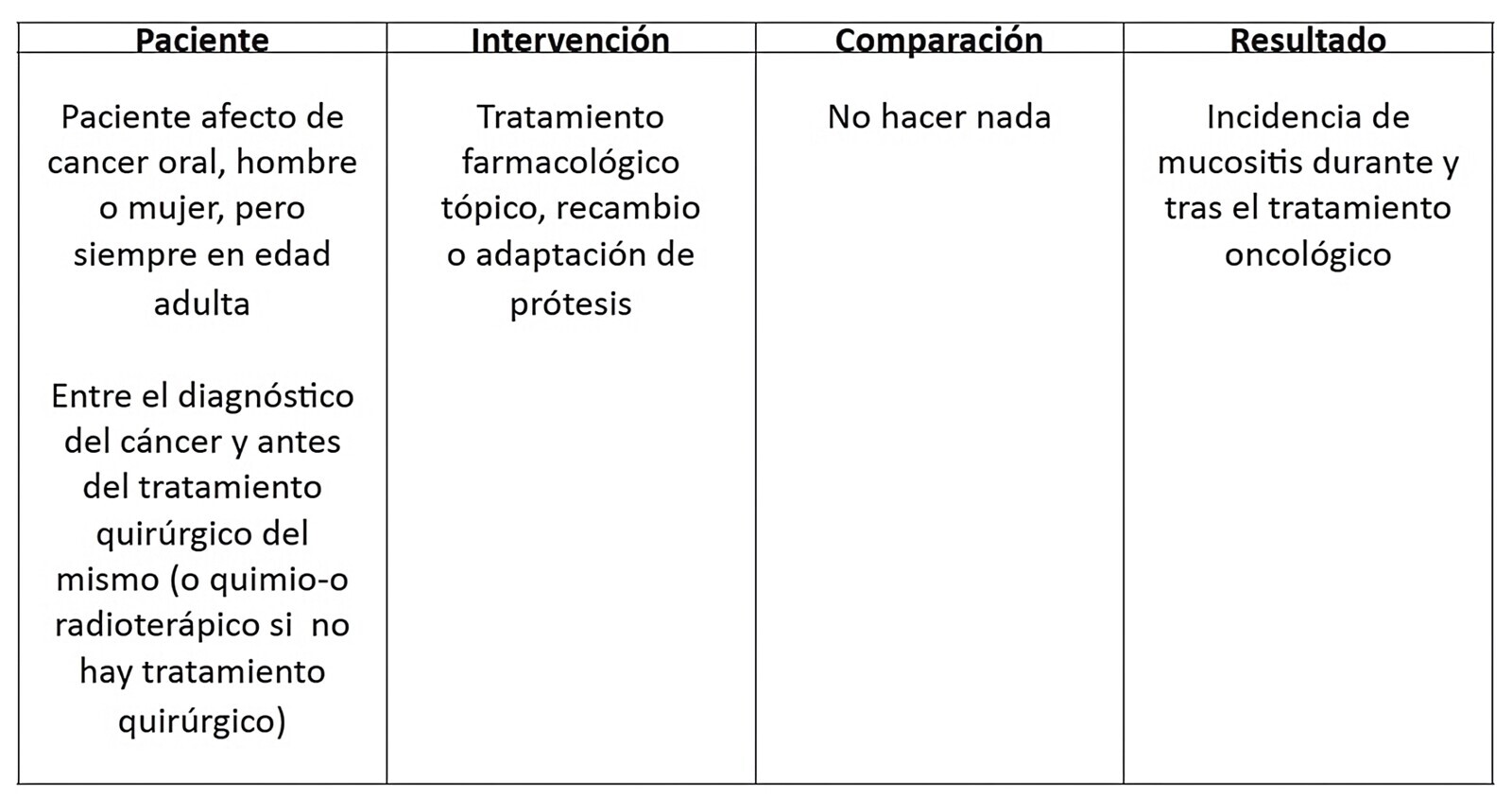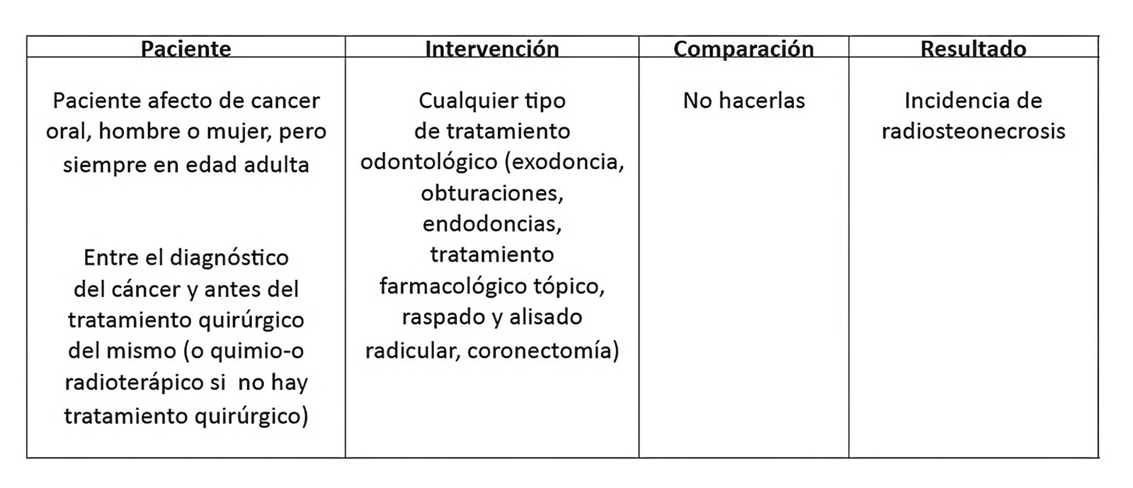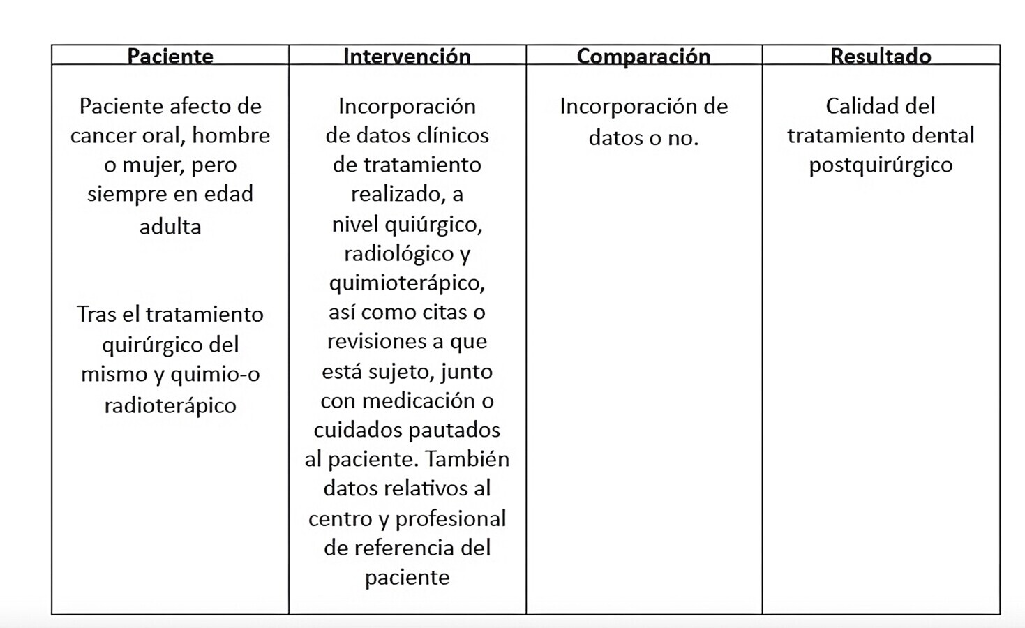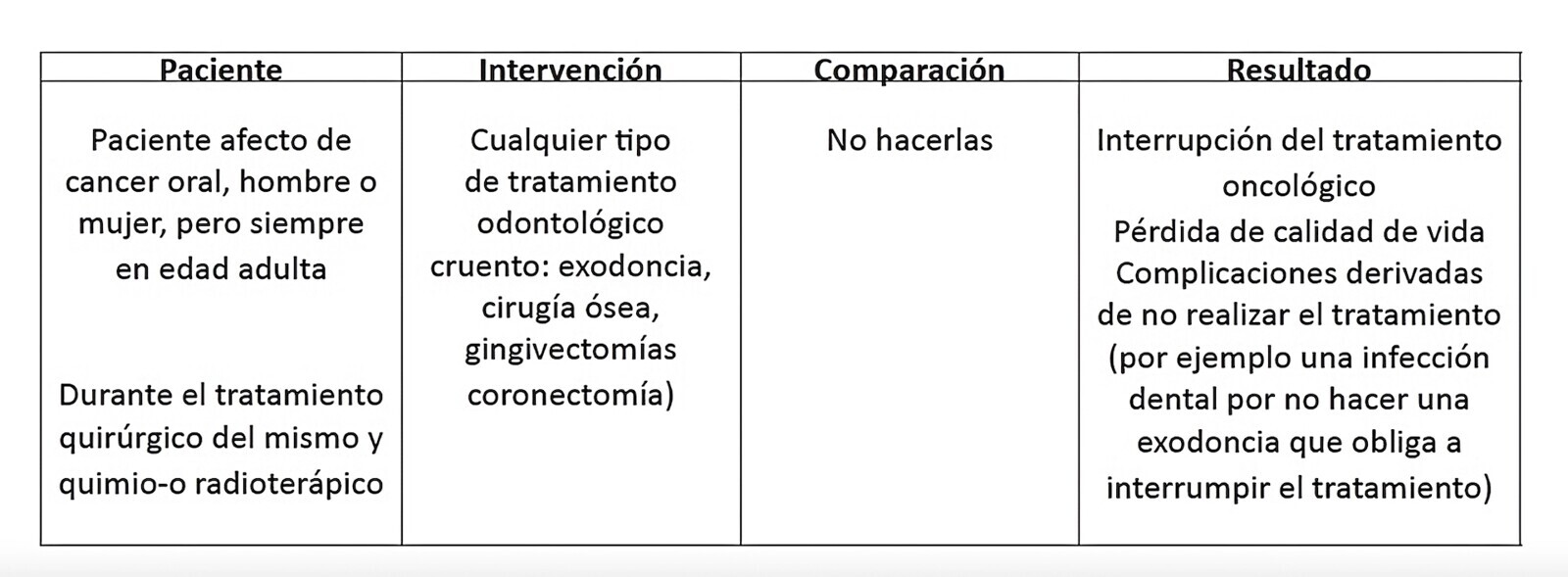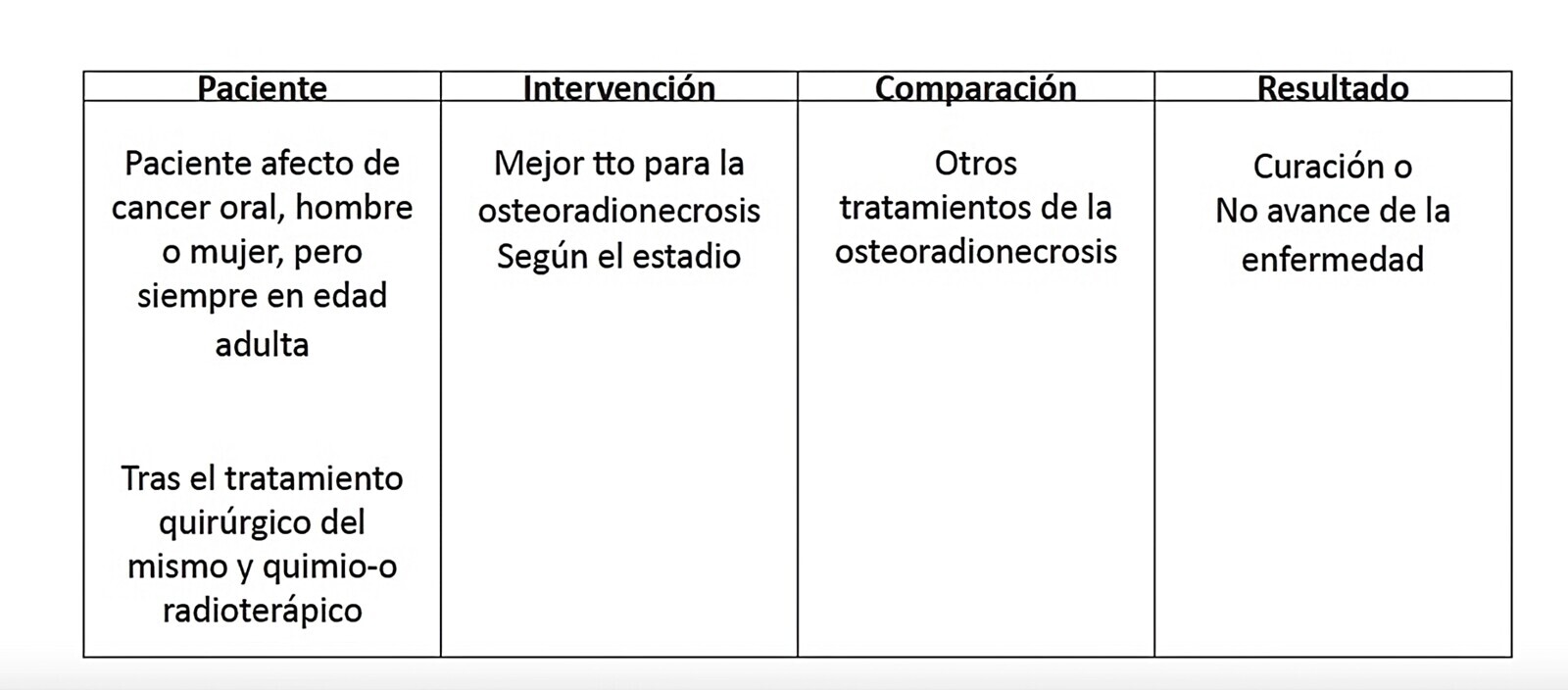 Las respuestas a las Preguntas Pico en la tabla superior son una contestación a los términos de las mismas preguntas realizadas en la búsqueda bibliográfica.