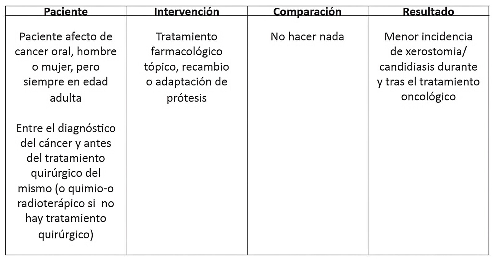Pregunta Clínica 4. ¿Qué actuaciones en el periodo pre-tratamiento pueden disminuir la incidencia de xerostomía y/o candidiasis en pacientes adultos oncológicos orales?