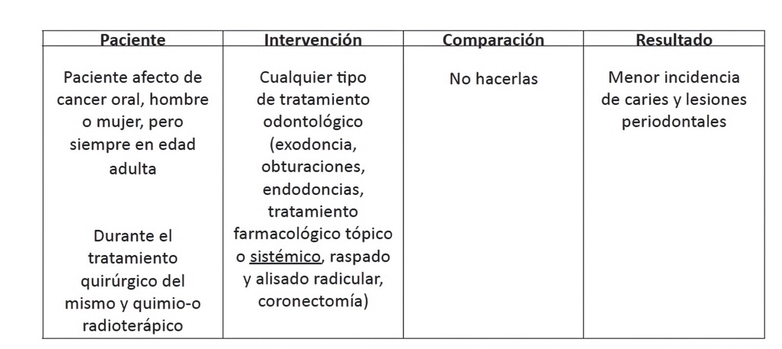 Pregunta Clínica 13. ¿En qué situaciones está justificado hacer tratamientos odontológicos cruentos durante el periodo de tratamiento oncológico?