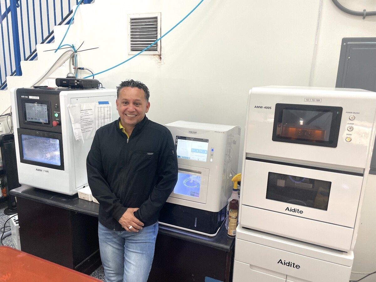 El técnico dental Guillermo Rhenals a la entrada de su laboratorio en Barranquilla, que cuenta con las más avanzadas herramientas tecnológicas. Fotos: GR Dental Lab