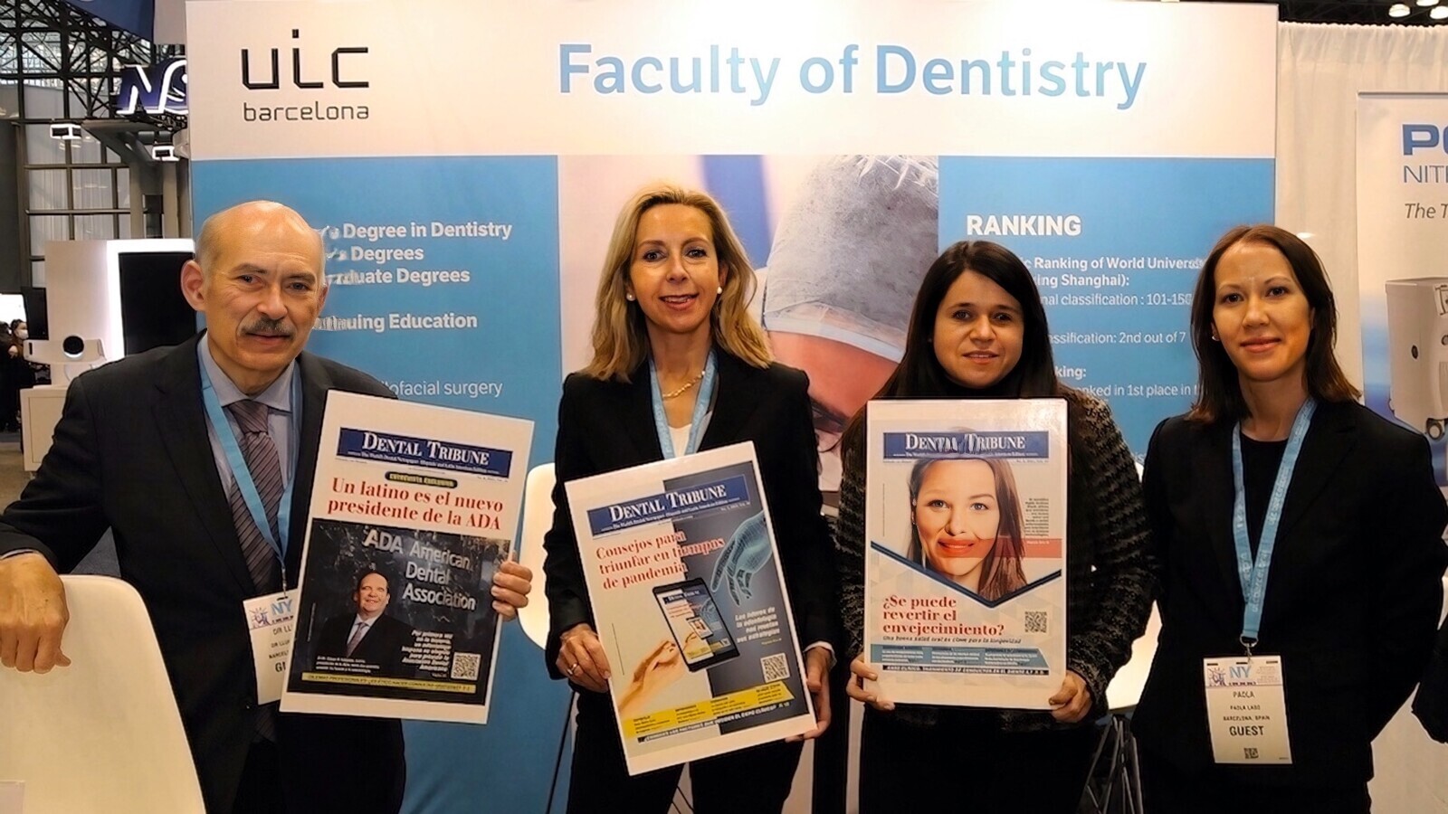 El equipo de UIC Barcelona, encabezado por el Dr. Luis Giner, Decano de la Facultad de Odontología, y Elisa Sanagustín, Directora Académica, ofrecerán en 2023 una serie de conferencias científicas en el Congreso Dental de Nueva York. Foto: José Antonio Rosario