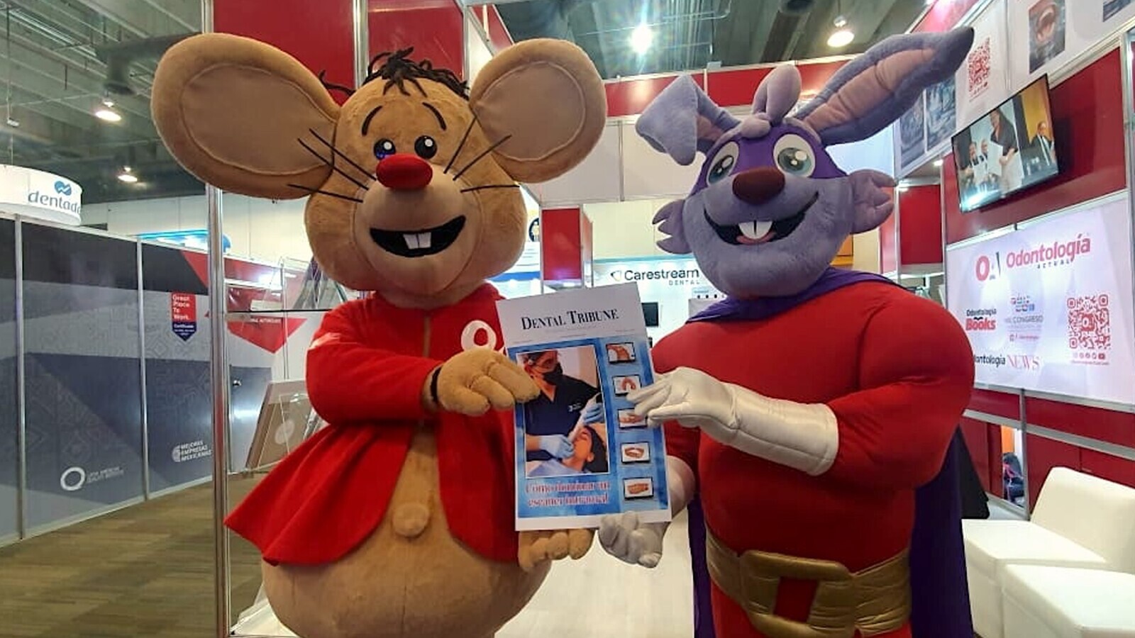 Dos animadores disfrazados de personajes de dibujos animados quisieron posar con la portada de Dental Tribune debido a la popularidad de la publicación.