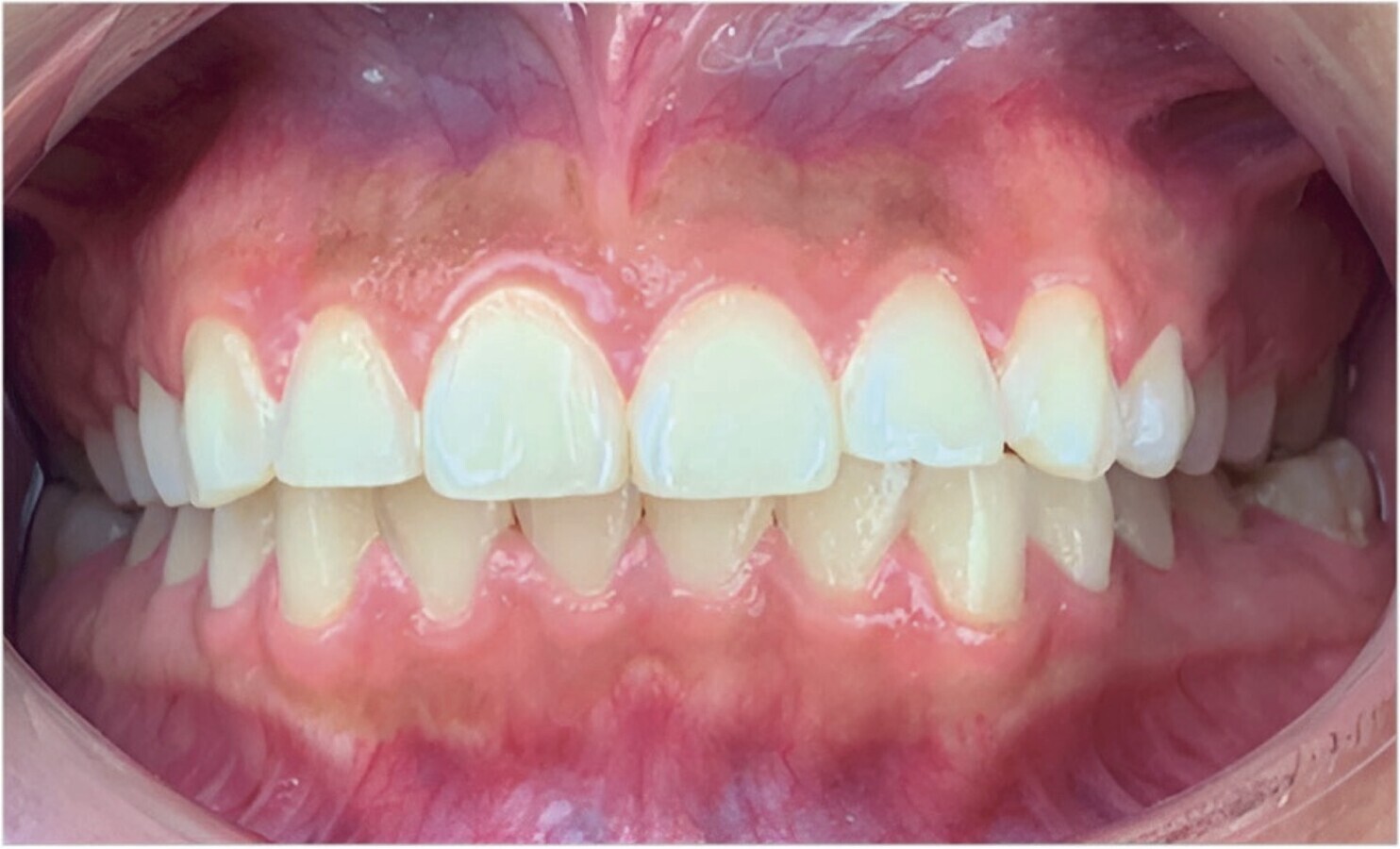 En la imagen registrada, se debe ver como máximo el incisivo central del cuadrante opuesto. Si se observa el incisivo lateral contralateral, indica que su toma fotográfica está registrada diagonal (desde muy adelante) y debe posicionar su cámara más paralela al sector lateral a fotografiar.