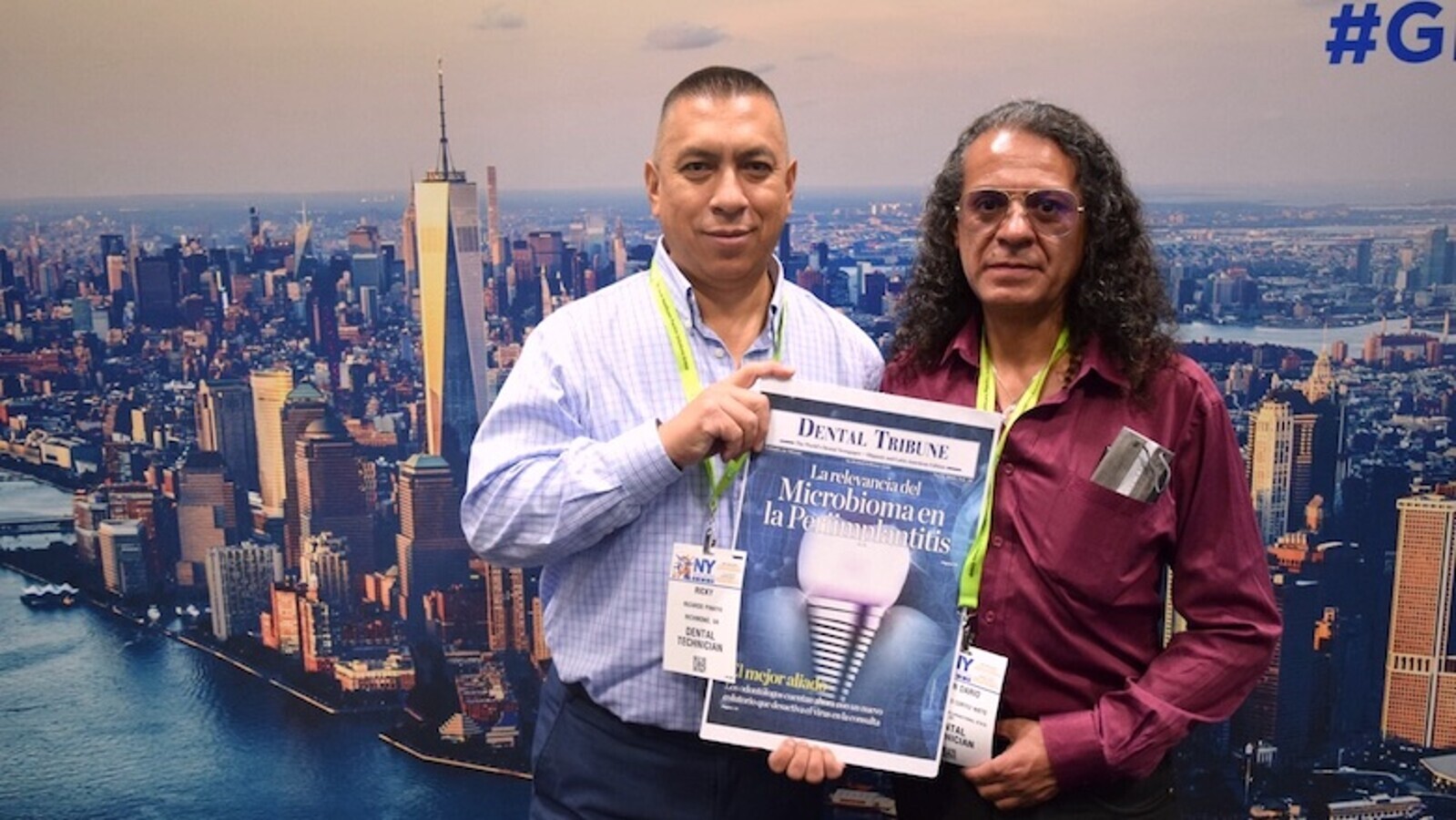 Los técnicos dentales Ricardo Pinaya y Rubén Darío Cortez Nieto, de La Paz, Bolivia, viajaron a Nueva York para ver las innovaciones que presenta el congreso. (Foto: José Antonio Rosario)