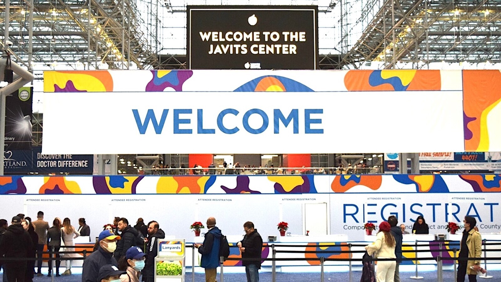 Un cartel de bienvenida en el Greater New York Dental Meeting. (Foto: José Antonio Rosario)