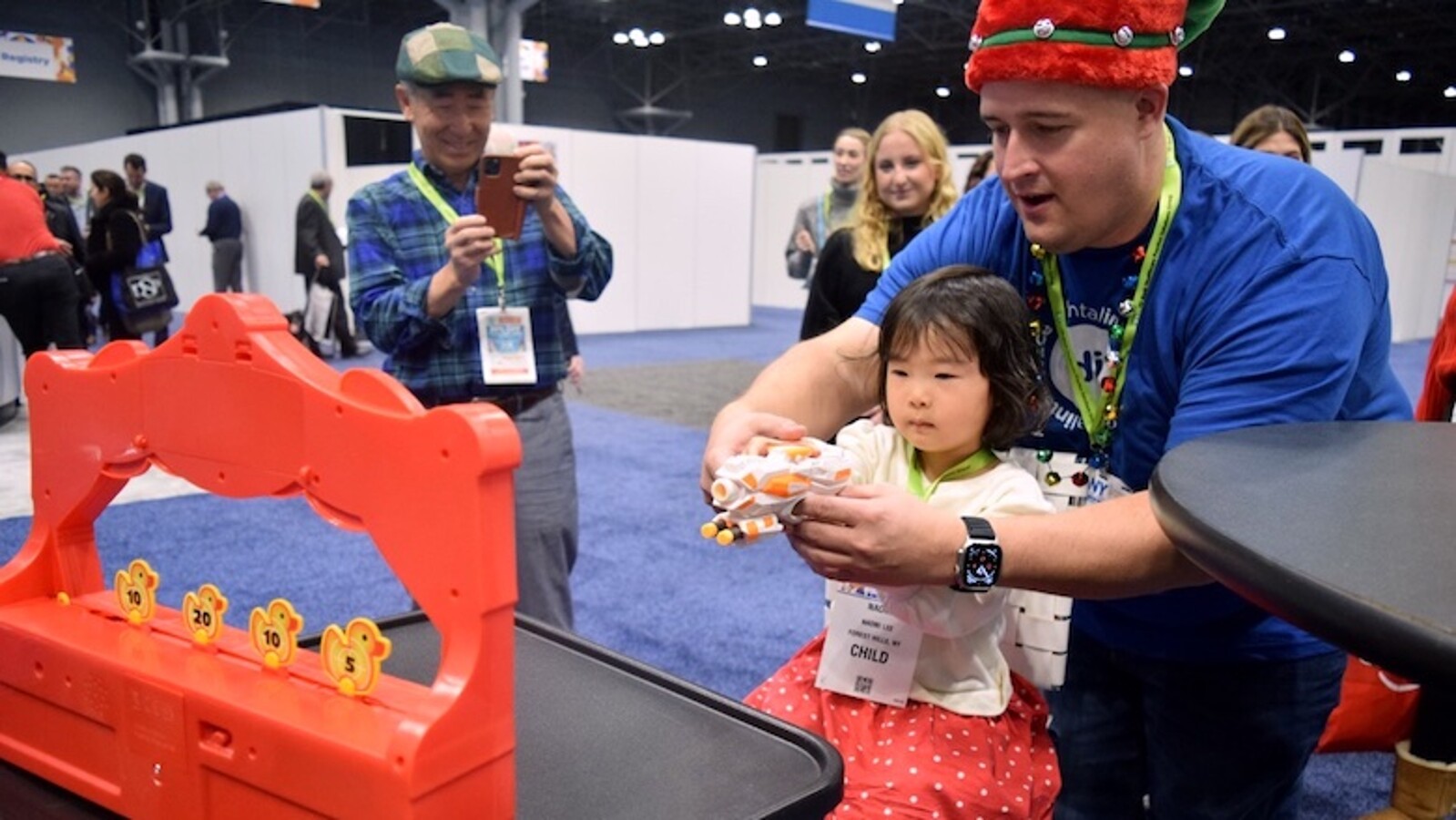 La pequeña Naomi se entretiene jugando a dispararle a patos en el congreso de Nueva York. (Foto: José Antonio Rosario)