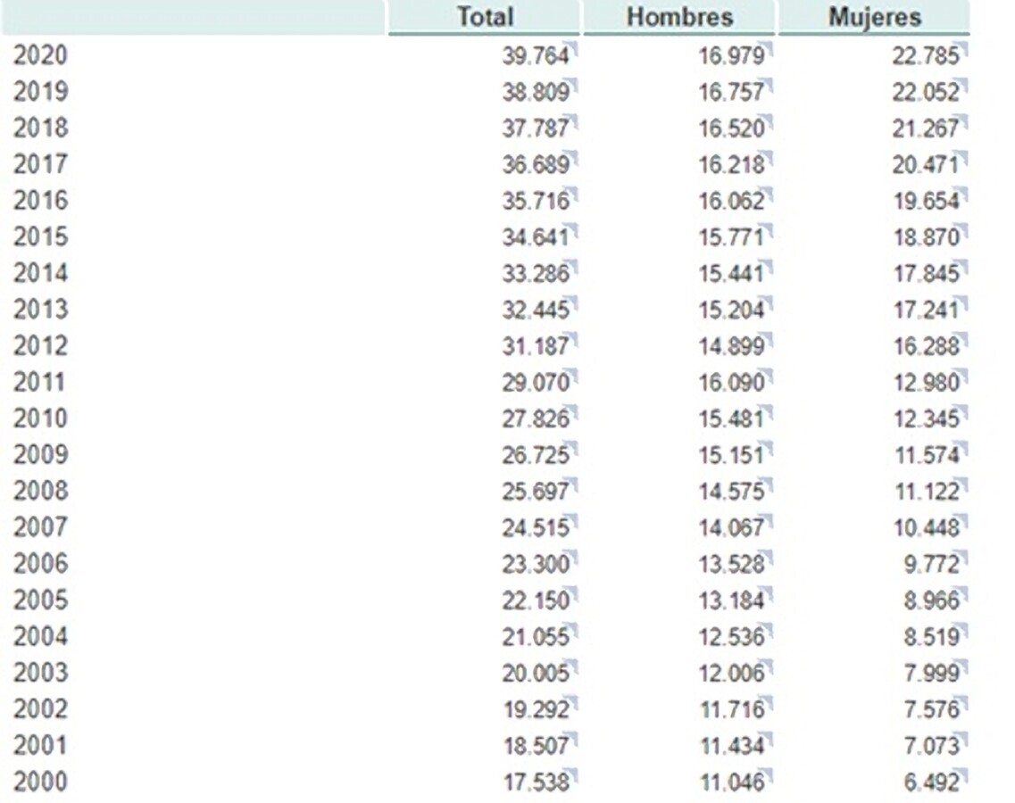 Según datos del Instituto Nacional de Estadística (INE) de 2020, el 57,3% de los dentistas colegiados son mujeres, con un total de 22.785 frente al 16.979 hombres dentistas colegiados. La presencia de la mujer en esta área sanitaria ha crecido en 733 nuevas colegiadas, respecto a 2019, manteniéndose la tendencia al alza iniciada en el año 2000.
