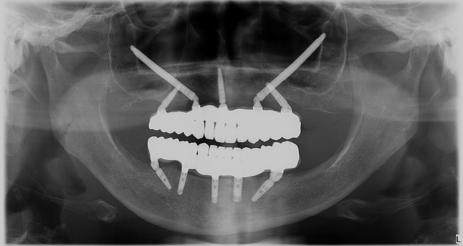 Figura 4. Radiografía panorámica después de la instalación definitiva de la prótesis.