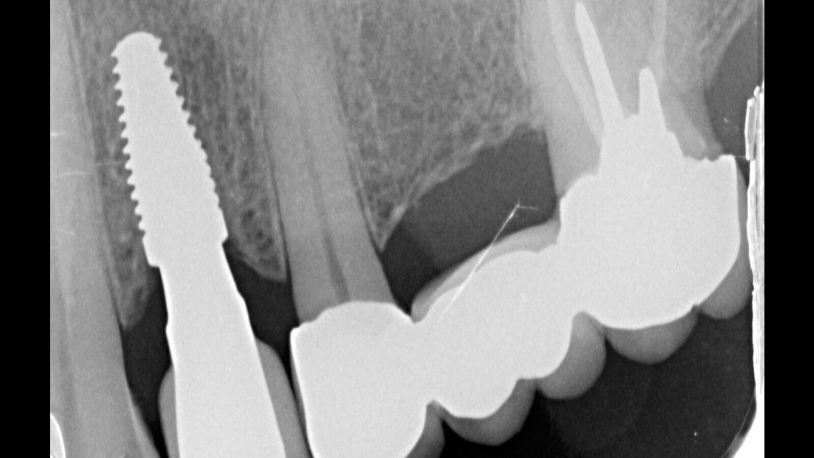 Se colocó el implante Neodent Zi 4.3 × 10 con un torque final de 45 N.cm. Colocamos un tornillo de cubierta y, después de la sutura, colocamos el antiguo puente con cemento temporal.