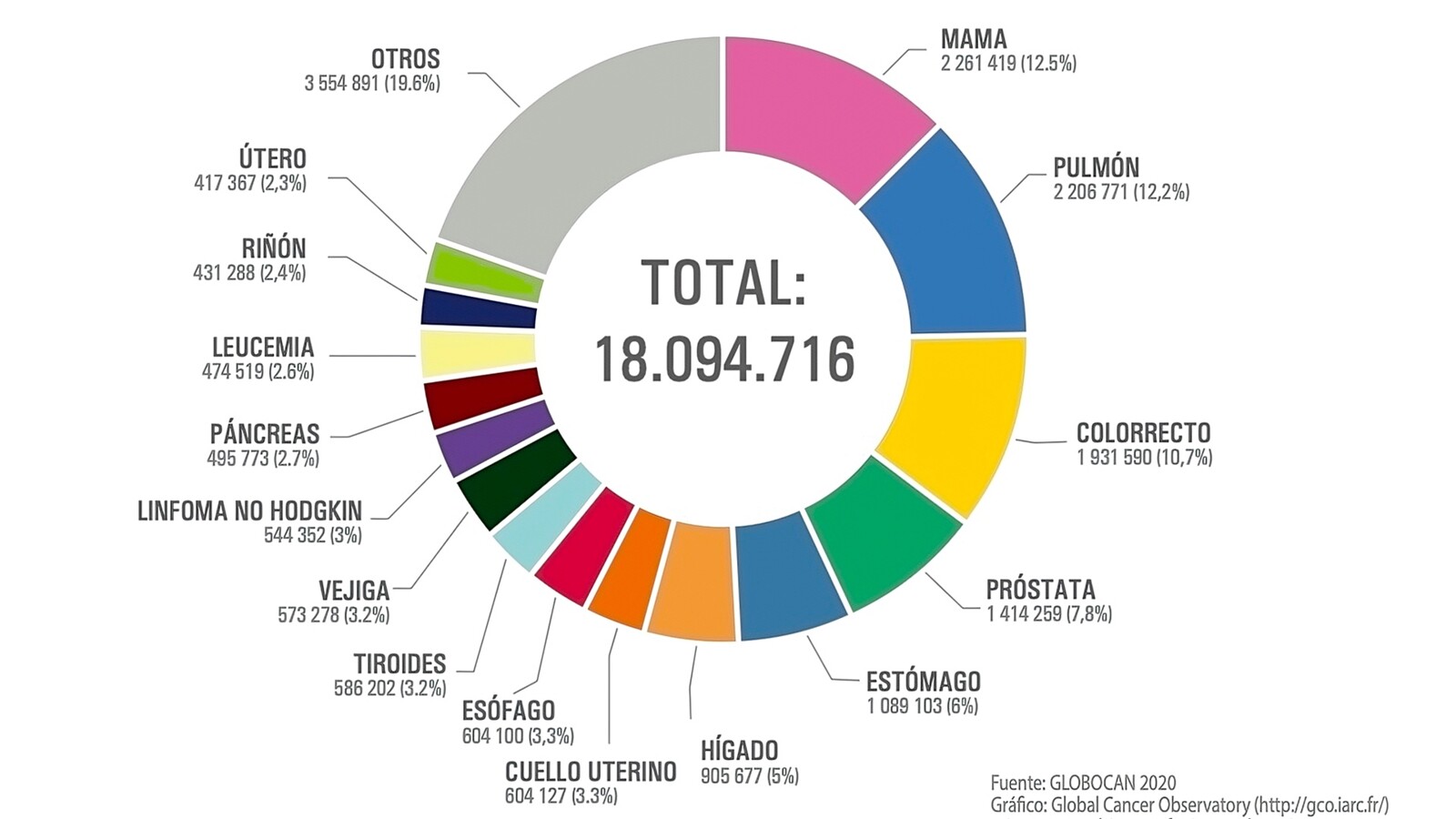 Figura 1. Cánceres más frecuentemente diagnosticados en el mundo.